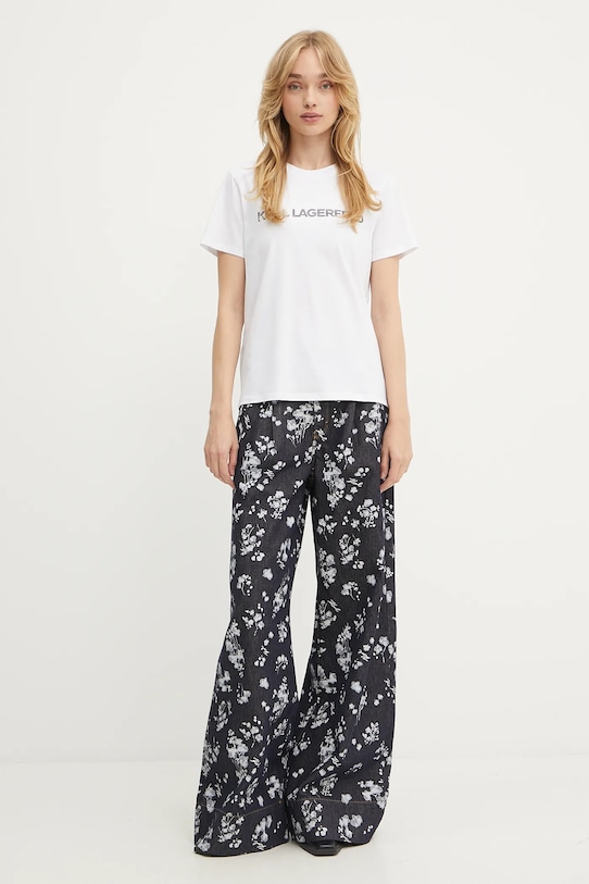 Джинсы свободного кроя из коллекции Karl Lagerfeld с высокой талией. Изготовлены из неэластичного денима. - Модель с высокой талией, застежкой на пуговицы и молнию. - Два боковых накладных кармана. - Два накладных кармана на ягодицах. - Ширина талии: 36 см. - Ширина бедер: 50 см. - Высота талии: 29 см. - Ширина штанины внизу: 36 см. - Ширина штанины: 35 см. - Длина по внутреннему шву: 86 см. - Размеры указаны для размера: 27.