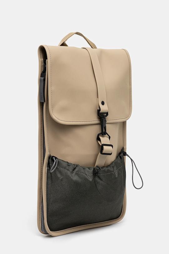 Рюкзак из коллекции Rains. Изготовлен из синтетического материала. Водостойкость означает повышенную устойчивость к воздействию воды. Изделие сохраняет свои свойства при контакте с водой, что обеспечивает больший комфорт благодаря более низкому порогу водопроницаемости, но не гарантирует полной водонепроницаемости. - Клапан застегивается на магнит. - Короткая ручка для удобной переноски в руке. - Регулируемые ремни позволяют индивидуально подгонять их длину под пользователя. - Скрытый защитный карман на молнии сзади. - Имеет отделение для ноутбука или планшета. - Модель на подкладке. - Вмещает формат А4. - Ширина у основания: 29 см. - Высота: 40 см. - Глубина: 14 см.