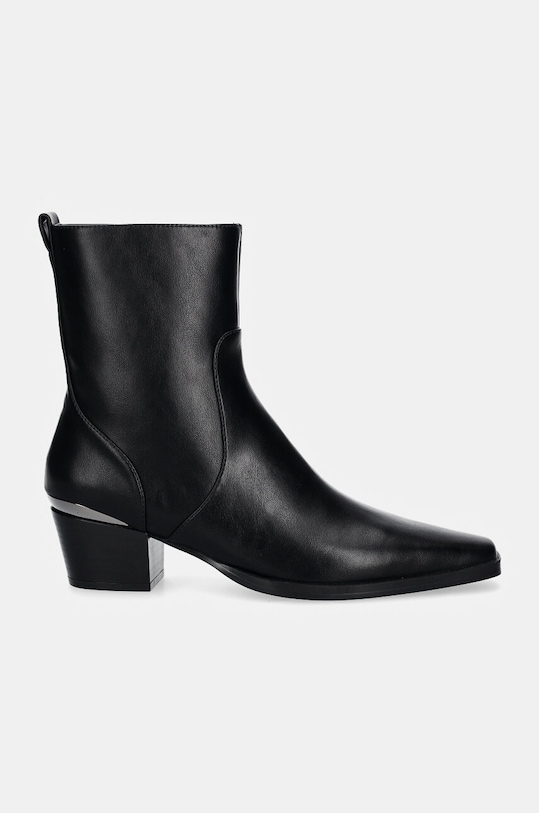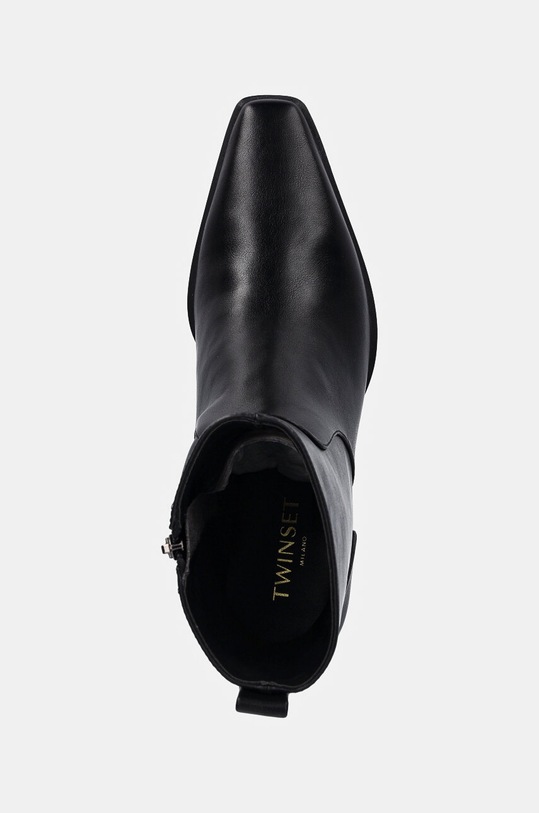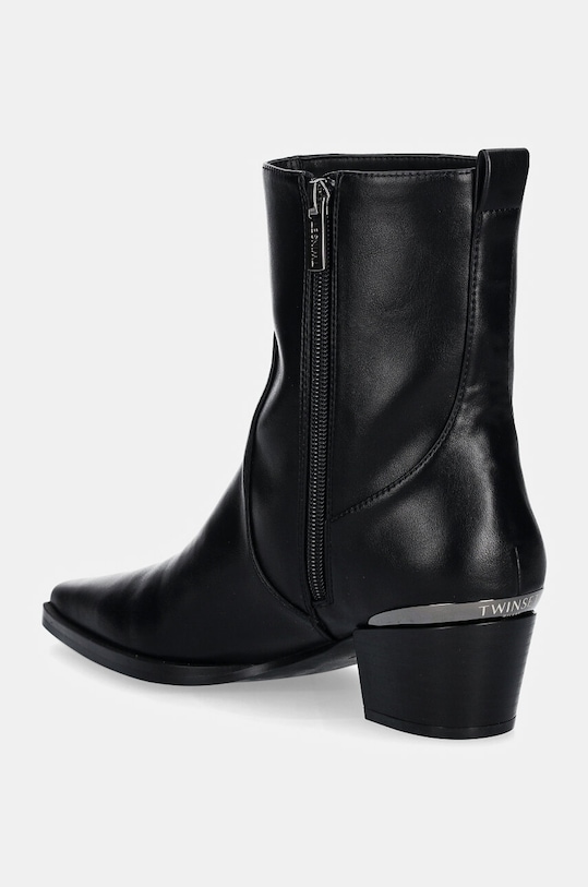 Эти ботинки из коллекции Twinset изготовлены из экокожи. Верх из непористого материала легко чистится влажной тканью. - Входящий в комплект тканевый чехол защищает изделие от пыли. - Сужающийся, жесткий нос. - Усиленный задник стабилизирует пятку и удерживает ногу в обуви, не давая ей выскользнуть во время движения. - Модель с блочным каблуком. - Резиновая подошва прочная и устойчивая к повреждениям. - Профилированная, мягкая стелька гарантирует комфорт использования. - Удобная застежка-молния сбоку позволяет легко надевать и снимать. - Петля сзади облегчает надевание и снятие обуви. - Высота каблука: 5 см. - Длина вставки: 24 см. - Размеры указаны для размера: 38.