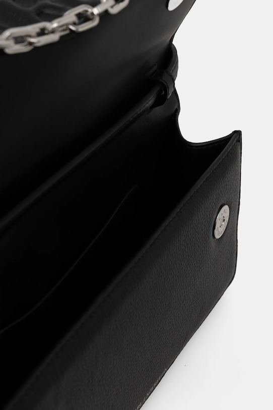 Маленькая сумочка из коллекции Карла Лагерфельда. Модель с застёжкой-крючком, выполнена из натуральной кожи. - Модели линейки Karl Cares изготовлены из материалов, произведенных в ходе устойчивого, экологически чистого процесса производства. - Клапан застегивается на магнит. - Модель без подкладки. - Внутренний накладной карман для удобного и безопасного хранения мелких предметов. - Отстегивающийся карман сзади. - Сумка для ношения в руке или на плече. - Имеет съемную ручку и съемный регулируемый ремень. - Не подходит для формата А4. - Входящий в комплект тканевый чехол защищает изделие от пыли. - Высота: 11,5 см. - Глубина: 6,5 см. - Ширина у основания: 22,5 см.