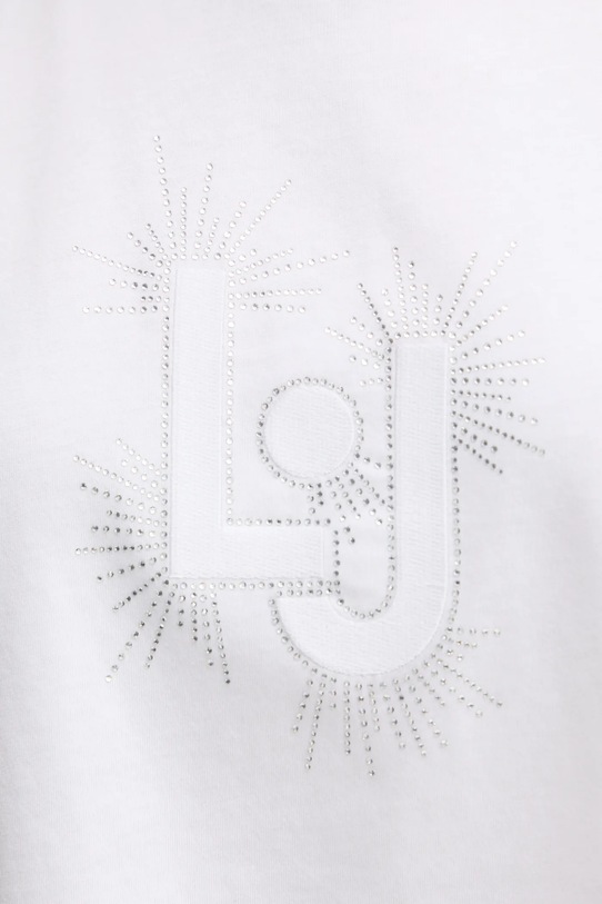 - Liu Jo Better — это линейка продукции, изготовленной из этичных материалов в результате устойчивого производственного процесса, что снижает негативное воздействие производства на окружающую среду. - Простой дизайн, не стесняющий движений. - Классический круглый вырез. - Модель с аппликацией. - Длина: 55 см. - Ширина под мышками: 48 см. - Размеры указаны для размера: S.