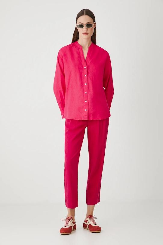 Брюки из коллекции «Медицина». Изготовлены из смеси льна и вискозы. - Материал с сертификатом OEKO-TEX Standard 100 гарантирует, что текстильные изделия, на которых он нанесен, не содержат вредных и потенциально опасных для человека и окружающей среды веществ. - Льняной материал обеспечивает комфорт и воздухопроницаемость. - Стиль «Чино». - Обхват талии обычный. - Эластичный пояс со шнурками. - Накладные карманы. - Декоративные закладки. - Гладкая ткань. - Ширина талии (до растягивания): 36,6 см. - Ширина талии (после растяжения): 46 см. - Ширина бедер: 52 см. - Высота талии: 26,5 см. - Длина по внутреннему шву: 68 см. - Размеры указаны для размера: S.