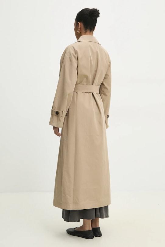 Тренч из коллекции Answear.LAB. Модель без подкладки выполнена из гладкой ткани. Модель выполнена из дышащего материала с высоким содержанием хлопка. - Свободный крой, обеспечивающий полную свободу движений. - Дополнительный слой материала в виде подкладки. - Модель с воротником. - Длинный рукав. - Крой рукава со спущенной линией плеча не ограничивает подвижность. - Текстильные полоски по низу рукавов. - Двубортный пиджак с застежкой на пуговицы. - Текстильный ремешок в комплекте. - Два боковых накладных кармана. - Тонкая, неэластичная ткань. - Длина рукава (от воротника): 74 см. - Длина: 132 см. - Ширина под мышками: 54 см. - Указаны размеры: S/M.