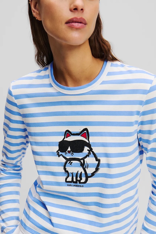 Длинный рукав из коллекции Karl Lagerfeld, выполненный из узорчатого трикотажа. Изготовлен из исключительно комфортного хлопкового материала. - Модели линейки Karl Cares изготовлены из материалов, произведенных в ходе устойчивого, экологически чистого процесса производства. - Классический круглый вырез. - Тонкий, эластичный трикотаж. - Длина рукава: 65 см. - Длина: 56 см. - Ширина под мышками: 50 см. - Размеры указаны для размера: S.