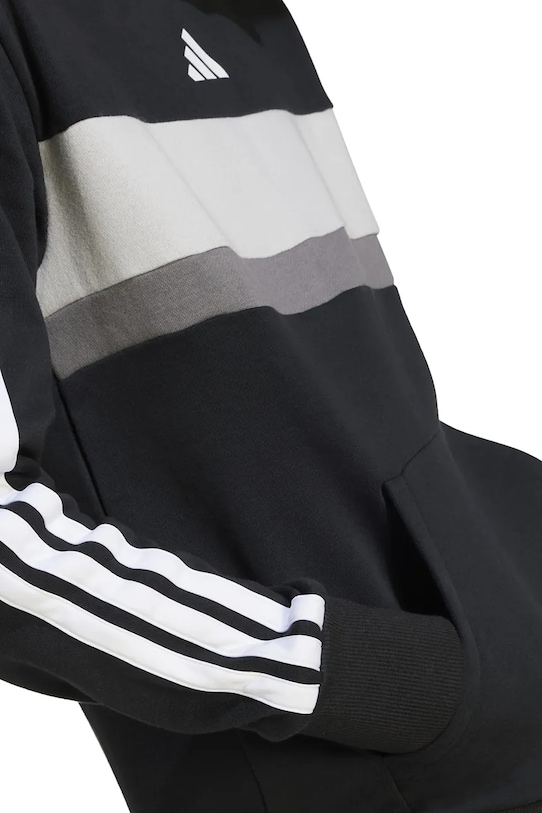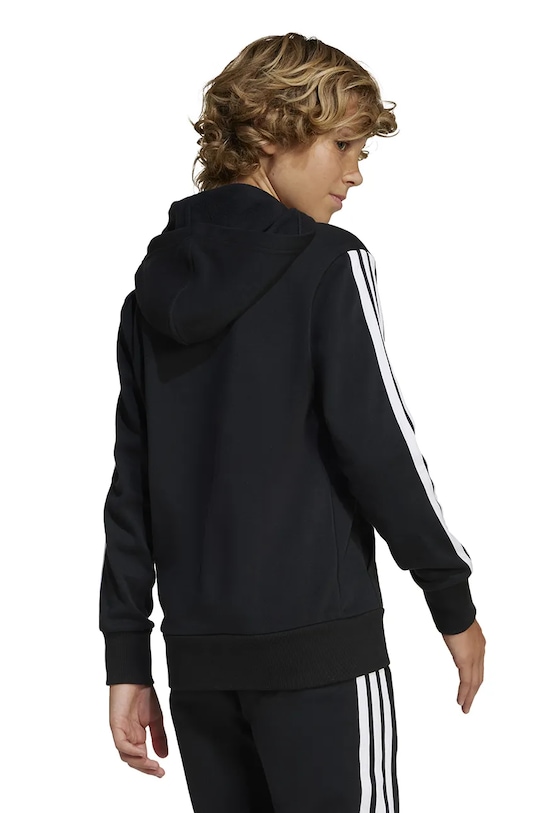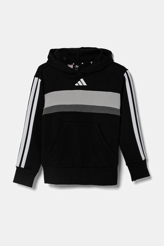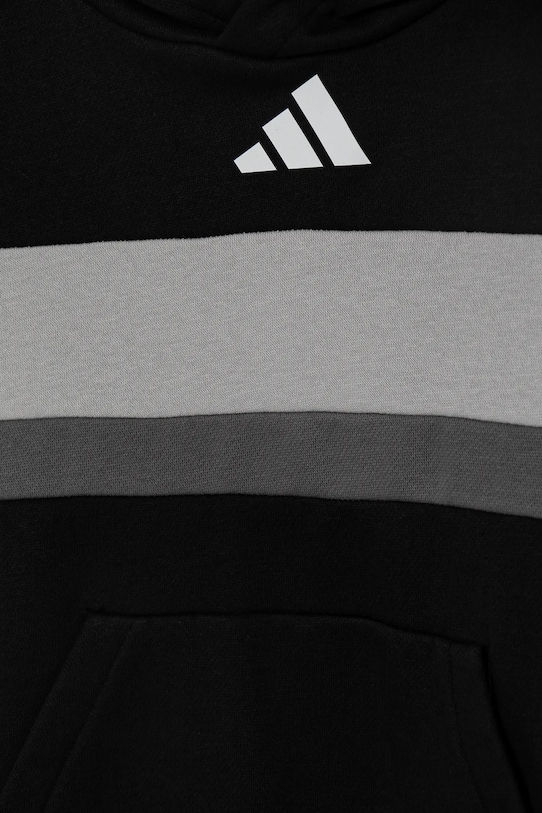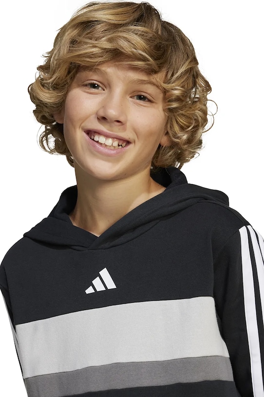 Эта детская толстовка с капюшоном Adidas изготовлена из эластичного трикотажного полотна. Она изготовлена из дышащего материала с высоким содержанием хлопка. - Полиэстер, использованный при изготовлении этой модели, полностью переработан. - Простой дизайн, не стесняющий движений. - Встроенный капюшон обеспечивает дополнительное тепло и защиту при необходимости. - Длинный рукав. - Практичный вставной карман-кенгуру спереди. - Рукава и низ изделия отделаны манжетами для защиты от неблагоприятных погодных условий. - Мягкая внутренняя отделка обеспечивает высокий комфорт использования и оптимальный тепловой комфорт. - Графический логотип бренда спереди. - Модель с полосками.