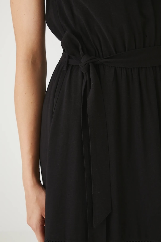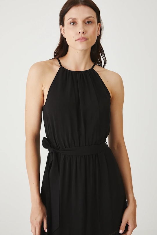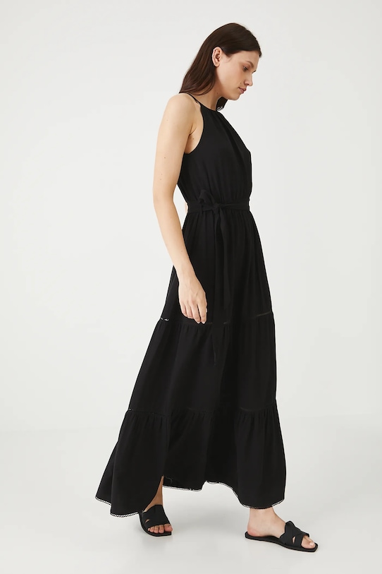 Платье из коллекции Medicine. Расклешенная модель из смесовой льняной ткани. - Материал с добавлением льна обеспечивает комфорт и воздухопроницаемость. - Расклешенный крой. - Модель без рукавов. - Вырез-чокер. - Завязывается сзади. - Текстильный ремешок в комплекте. - Эластичный пояс. - Декоративные оборки. - Модель с декоративными оборками. - Декоративные вставки. - Декоративная отделка. - Декоративные детали. - Гладкая ткань. - Модель макси длины. - Ширина талии (до растягивания): 31 см. - Ширина талии (после растяжения): 48 см. - Ширина бедер: 65 см. - Ширина груди: 48 см. - Длина: 136 см. - Размеры указаны для размера: S.