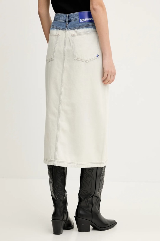 Эта юбка из коллекции Karl Lagerfeld Jeans выполнена из двухцветного денима. Она изготовлена из исключительно комфортного, дышащего материала с высоким содержанием хлопка. - Частично изготовлен из лиоцелла — экологичного и нетоксичного материала. Этот материал мягкий и дышащий, идеально подходит для чувствительной кожи, склонной к раздражению. - Простой дизайн, не стесняющий движений. - Модель с высокой талией, застежкой на пуговицы и молнию. - Впечатляющий крой. - Три накладных кармана спереди. - Два накладных кармана на ягодицах. - Тонкая, слегка эластичная ткань. - Модель без подкладки. - Ширина талии: 34 см. - Длина: 80 см. - Размеры указаны для размера: S.