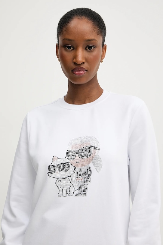 Эта толстовка Karl Lagerfeld выполнена из эластичного трикотажного полотна. Она изготовлена из дышащего материала с высоким содержанием хлопка. - Изделие содержит органический хлопок и переработанные полиэфирные волокна. - Простой дизайн, не стесняющий движений. - Круглый ребристый вырез. - Длинный рукав. - Рукава и низ изделия отделаны манжетами для защиты от неблагоприятных погодных условий. - Графический логотип бренда спереди.