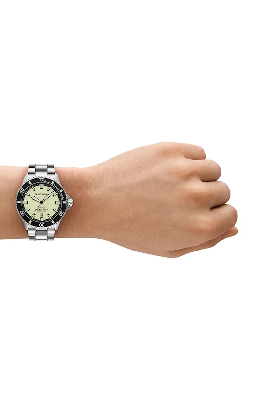Часы из коллекции Emporio Armani. Модель с круглым циферблатом и сегментированным браслетом. Упакованы в фирменную коробку. - Материал корпуса и браслета: сталь. - Форма корпуса: круглая. - Сегментированный браслет. - Водонепроницаемость: WR. 200/300 м (20/30 АТМ) — подходит для подводного плавания. - Стекло: минеральное (закаленное, очень устойчивое к ударам, трудно царапается). - Автоматическое движение (заводится при движении тела, батарейки не требуются). - Часы снабжены люминесцентным покрытием, обеспечивающим длительное свечение в темноте после кратковременного воздействия света. - На нем есть штамп с датой. - Ширина корпуса: 42 мм. - Ширина ремешка: 22 мм.