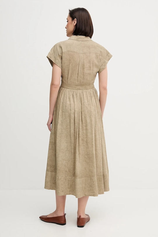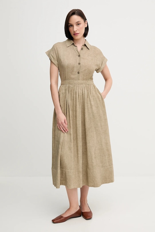 Это платье из коллекции Pedro del Hierro выполнено из тонкой, слегка эластичной ткани. Модель выполнена из дышащего материала с высоким содержанием вискозы. - Расклешенный крой. - Нижняя часть платья с дополнительным слоем материала в виде подкладки. - Модель с мягким воротником. - Короткий рукав. - Крой рукава со спущенной линией плеча не ограничивает подвижность. - Застежка на короткие пуговицы обеспечивает эффективную вентиляцию и легкость надевания и снимания. - Застегивается сбоку на потайную молнию. - Два боковых накладных кармана. - Модель с декоративными оборками. - Длина: 132 см. - Ширина под мышками: 47 см. - Размеры указаны для размера: S.