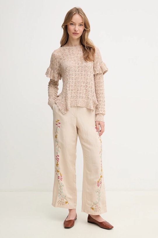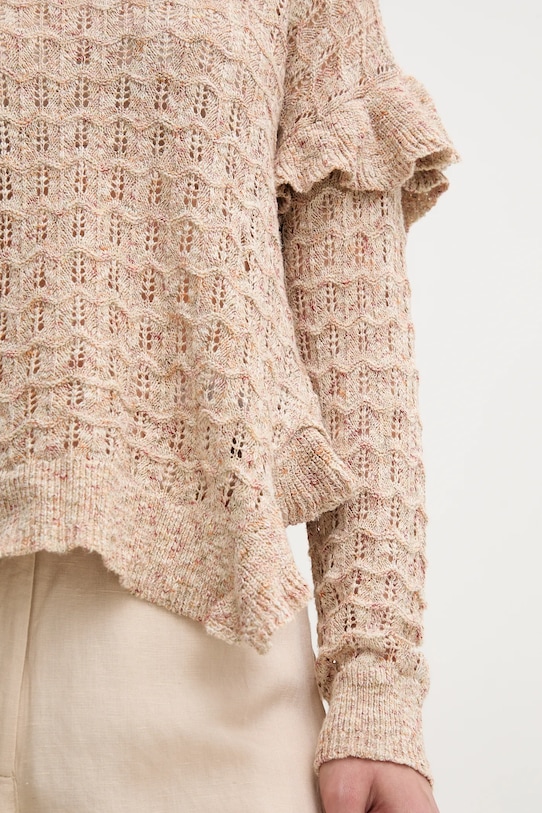 Этот свитер из коллекции Hoss Intropia выполнен из ажурного трикотажа. Оптимальная эластичность материала обеспечивает полную свободу движений. — Продукт из серии «Инвестирование в Better Cotton». Better Cotton — ведущая в мире инициатива по устойчивому развитию хлопка, миссия которой — помочь хлопковым общинам выживать и процветать, одновременно защищая и восстанавливая окружающую среду. - Свободный крой, обеспечивающий полную свободу движений. - Длинный рукав. - Крой рукава со спущенной линией плеча не ограничивает подвижность. - Классический круглый вырез. - Модель с декоративными оборками. - Длина: 64 см. - Ширина под мышками: 51 см. - Указаны размеры: XS/S.