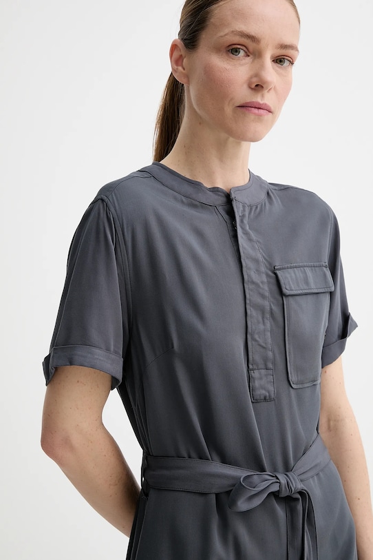 Это платье из коллекции G-Star выполнено из тонкой, неэластичной ткани. Модель выполнена из дышащего вискозного материала. - Частично изготовлен из LENZING ECOVERO, экологически чистого материала. LENZING ECOVERO производится из органической целлюлозы и древесной массы, используя на 50% меньше воды, чем популярная вискоза. - Данное изделие частично изготовлено из переработанного полиэстера. - Простой дизайн, не стесняющий движений. - Застегивается на короткую кнопку. - Текстильный ремешок в комплекте. - Нагрудный карман. - Два боковых накладных кармана. - Ширина под мышками: 48 см. - Ширина талии: 47 см. - Длина: 99 см. - Размеры указаны для размера: S.