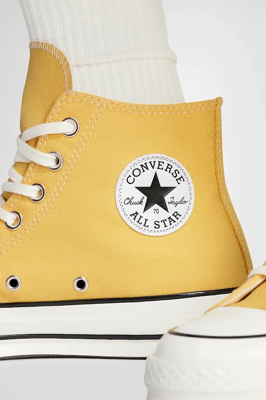 Кеды из коллекции Converse. Изготовлены из прочного парусинового материала и оснащены слегка гибкой резиновой подошвой, которая прочна и устойчива к повреждениям. - Круглый, прорезиненный носок. - Текстильная внутренняя часть комфортна для ног и облегчает содержание обуви в чистоте. - Стелька из пеноматериала Ortholite отводит влагу и предотвращает потливость ног. Она обладает антибактериальными и противогрибковыми свойствами, защищает от запахов и обеспечивает отличную амортизацию. - Усиленный задник обеспечивает отличную поддержку лодыжки и пятки. - Классическая шнуровка позволяет индивидуально подогнать обувь по ноге. - Резиновая подошва прочная и устойчивая к повреждениям.