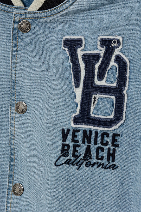 Эта детская куртка-бомбер из коллекции United Colors of Benetton без подкладки сшита из денима. Она изготовлена из исключительно комфортного и дышащего материала, идеально подходящего для теплого времени года. - Простой дизайн, не стесняющий движений. - Удобная застежка-кнопка позволяет легко надевать и снимать. - Рукава и низ изделия отделаны манжетами для защиты от неблагоприятных погодных условий. - Неутепленная модель без подкладки. - Два боковых накладных кармана.