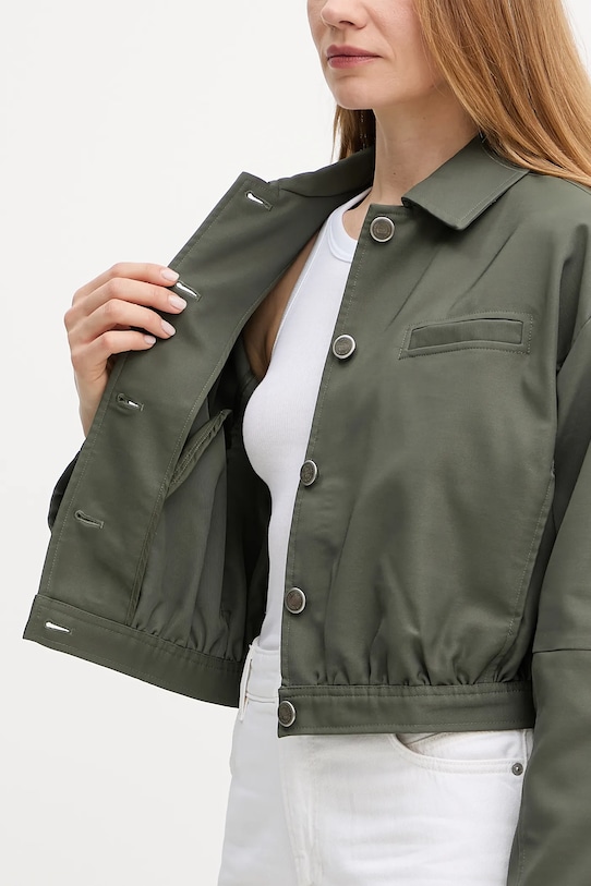 Эта куртка из коллекции Guess без подкладки сшита из гладкой ткани. Полиэстер обеспечивает высокую устойчивость к сминанию. - Продукция Guess Eco разработана таким образом, чтобы производить как можно меньше отходов без ущерба для качества и долговечности. - Свободный крой, обеспечивающий полную свободу движений. - Неутепленная модель без подкладки. - Модель с мягким воротником. - Крой рукава со спущенной линией плеча не ограничивает подвижность. - Удобная застежка на кнопки позволяет легко надевать и снимать. - Накладной карман на груди. - Модель с декоративными оборками. - Длина: 50 см. - Ширина под мышками: 58 см. - Размеры указаны для размера: S.