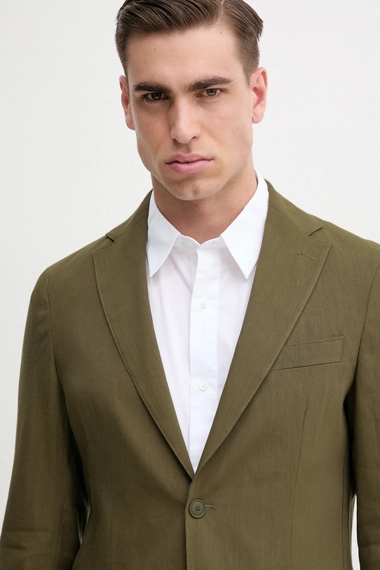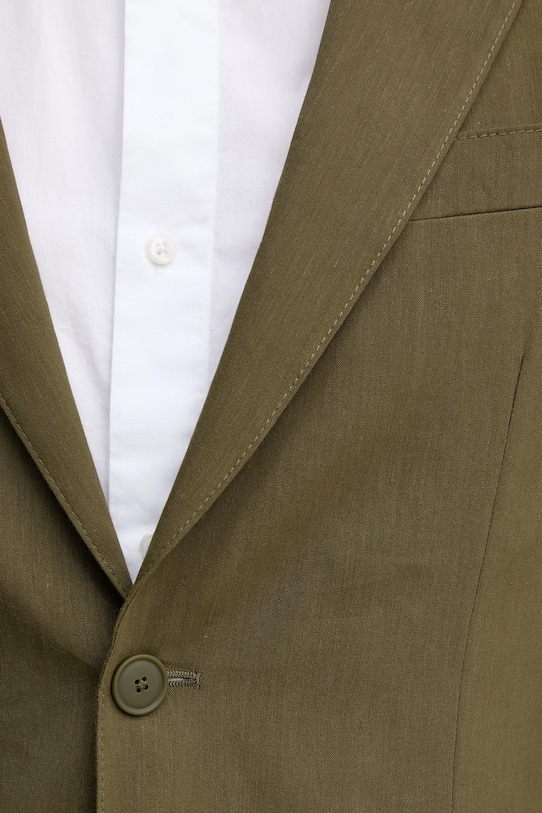 Эта куртка из коллекции BOSS выполнена из тонкой, неэластичной ткани. Модель выполнена из дышащего льняного материала. Manteco — итальянский бренд, известный своей текстильной продукцией, в частности, переработанной шерстью. Компания уделяет первостепенное внимание устойчивому развитию, сочетая современные технологии с традиционными текстильными техниками. Материалы Manteco используются в индустрии моды и текстиля, сочетая качество с экологичностью. - Обычная посадка. - Застежка на пуговицы. - Модель с карманами, декорированными клапанами. - Длина рукава: 63 см. - Длина: 71 см. - Ширина под мышками: 52 см. - Ширина плеч: 41 см. - Размеры указаны для размера: 48.