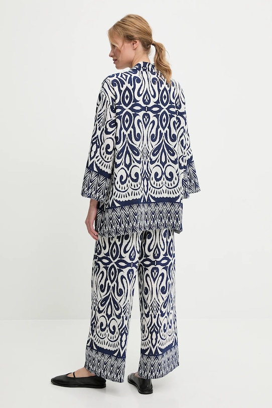 Куртка и брюки из коллекции Answear.LAB выполнены из тонкой неэластичной ткани. Добавление полиамида обеспечивает повышенную прочность. - Свободный крой, обеспечивающий полную свободу движений. - Расстегивающаяся модель. - Крой рукава со спущенной линией плеча не ограничивает подвижность. - Широкий эластичный пояс. - Повышенное состояние. - Два боковых накладных кармана. - Декоративный переплет. - Длина: 74 см. - Ширина под мышками: 60 см. - Ширина талии: 33,5 см. - Ширина бедер: 53 см. - Высота талии: 37 см. - Ширина штанины внизу: 30 см. - Ширина штанины: 31,5 см. - Длина внешней части штанины: 104,5 см. - Указаны размеры: S/M.