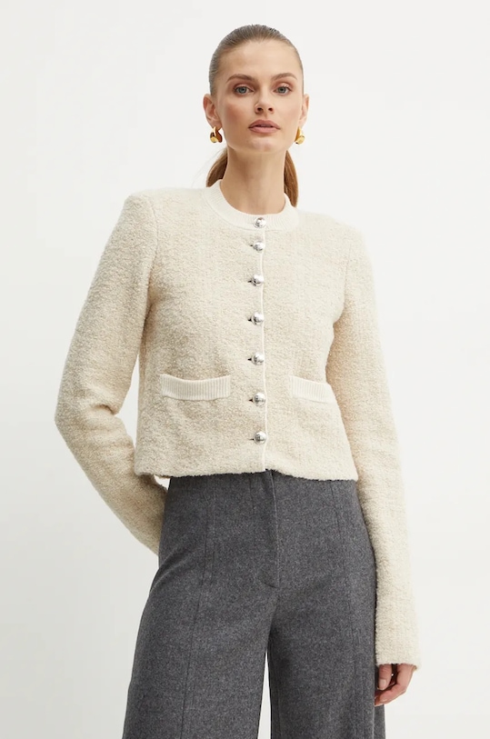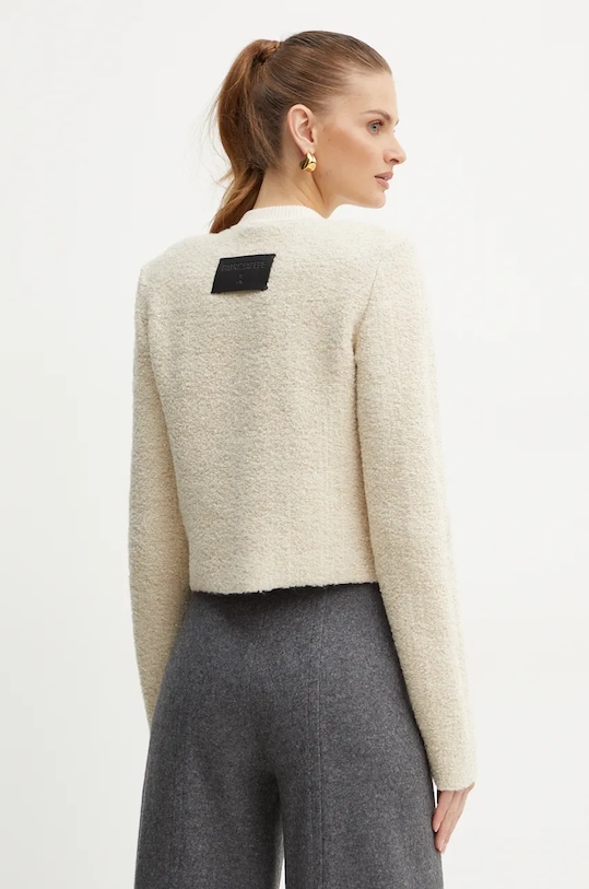 Эта куртка из коллекции Patrizia Pepe выполнена из гладкого трикотажа. Высокие терморегулирующие свойства шерсти позволяют согреться в холод и охладиться в жару. - Простой дизайн, не стесняющий движений. - Застежка на пуговицы. - Два накладных кармана спереди. - В плечах вшиты подкладки. - Модель без подкладки. - Длина рукава: 72 см. - Длина: 48 см. - Ширина под мышками: 45 см. - Размеры указаны для размера: 36.