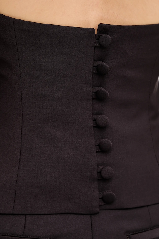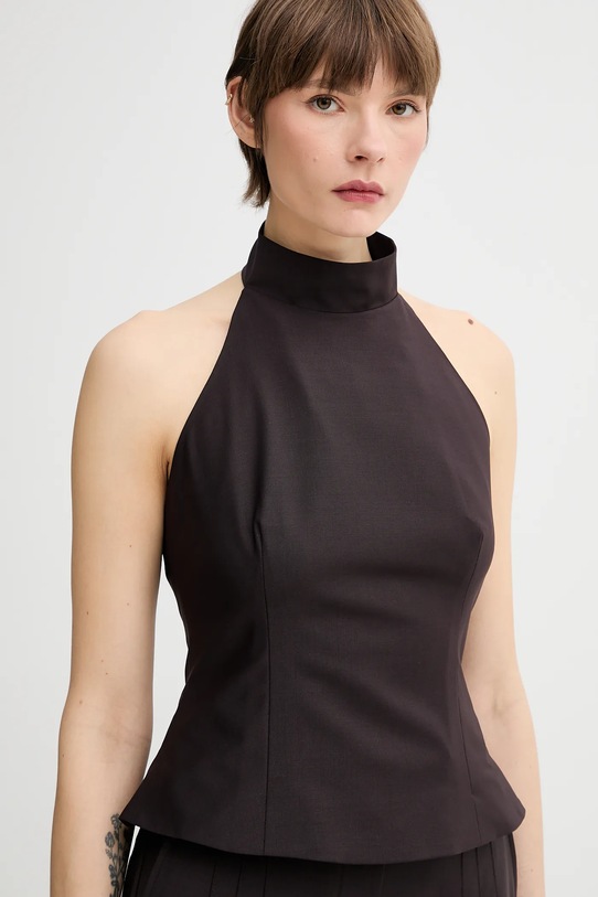 Эта блузка из коллекции Remain выполнена из тонкой, неэластичной ткани. Эта модель выполнена из исключительно комфортного и дышащего материала, идеально подходящего для теплого времени года. - B Corporation — это сертификация, которая выдается компаниям, которые соответствуют самым высоким стандартам подтвержденной социальной и экологической эффективности, а также прозрачности для общественности для достижения баланса между прибылью и целями. - Приталенный крой, подчеркивающий силуэт. - Вырез халтер. - Модель на подкладке. - Удобная застежка на кнопки позволяет легко надевать и снимать. - Длина: 50 см. - Ширина под мышками: 41 см. - Размеры указаны для размера: 36.