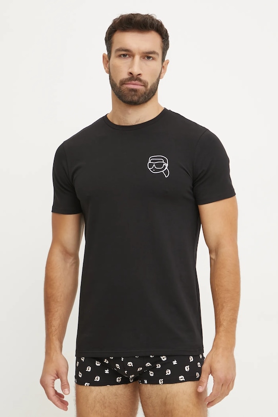 Пижама из коллекции Karl Lagerfeld. Модель выполнена из узорчатого трикотажа, изготовленного из исключительно комфортного материала с высоким содержанием хлопка. - Органический хлопок выращивается без использования вредных химикатов, химических пестицидов и искусственных удобрений. - Простой дизайн, не стесняющий движений. - Классический круглый вырез. - Короткий рукав. - Широкий эластичный пояс. - Тонкий, эластичный трикотаж.