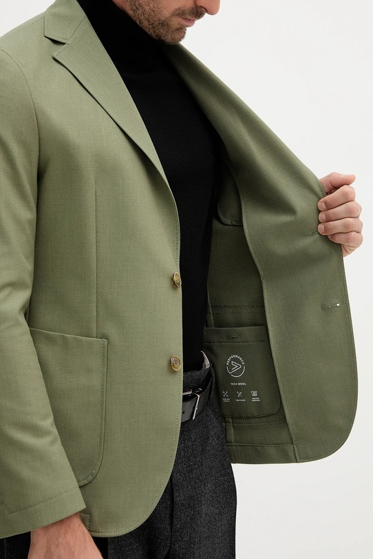 Эта куртка BOSS изготовлена из гладкой ткани. Полиэстер обеспечивает повышенную устойчивость к сминанию. - Можно стирать в стиральной машине, что облегчает уход. - Использование технологии 4-стороннего растяжения придает материалу эластичность и растяжимость в четырех направлениях, что значительно повышает комфорт использования и не стесняет движений. - Приталенный фасон. - Модель без подкладки. - Классические лацканы. - Однобортный пиджак с застежкой на пуговицы. - Внешние накладные карманы. - Тонкая, гибкая ткань. - Длина рукава: 66 см. - Длина: 70 см. - Ширина под мышками: 49 см. - Ширина плеч: 41 см. - Размеры указаны для размера: 48.