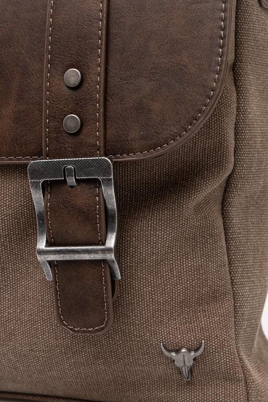 Сумка из коллекции «Медицина». Изготовлена из комбинации текстиля и синтетических материалов. - Клапан застегивается на магниты. - Декоративные пряжки. - Отделение на молнии. - Два внешних накладных кармана. - Карман на молнии сзади. - Имеет внутренние карманы, в том числе один на молнии. - Имеет отдельное отделение на липучке для ноутбука или планшета. - Встроенное металлическое кольцо внутри позволяет прикрепить ключи или другие мелкие предметы с помощью карабина. - Съемный регулируемый ремешок. - Декоративная деталь спереди. - Модель на подкладке. - Вмещает формат А4. - Глубина: 8 см. - Высота: 30 см. - Ширина у основания: 37 см.