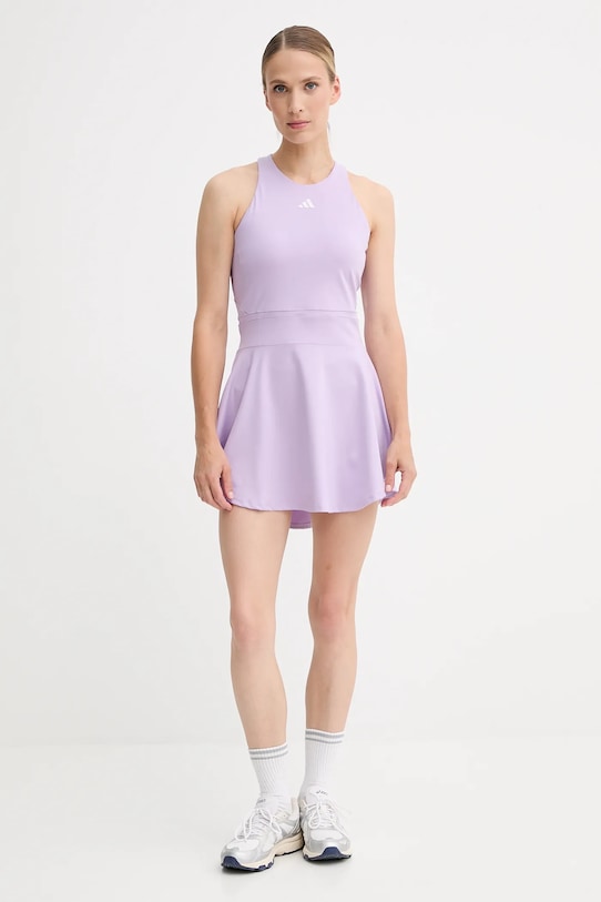 Спортивное платье из коллекции adidas Performance. Изготовлено из влагоотводящего материала. - Технология Climacool, используемая в материале, отводит влагу во внешний слой, одновременно пропуская воздух, что обеспечивает оптимальную вентиляцию. - Входящие в комплект шорты из эластичного трикотажного полотна повышают функциональность и позволяют свободно двигаться. - Плоские швы защищают кожу от натирания и раздражения и обеспечивают высокий уровень комфорта во время занятий спортом. - Съемные подушечки придают жесткость, стабилизируют и приподнимают бюст. - Длина: 77 см. - Ширина под мышками: 41 см. - Ширина талии: 33 см. - Размеры указаны для размера: S.