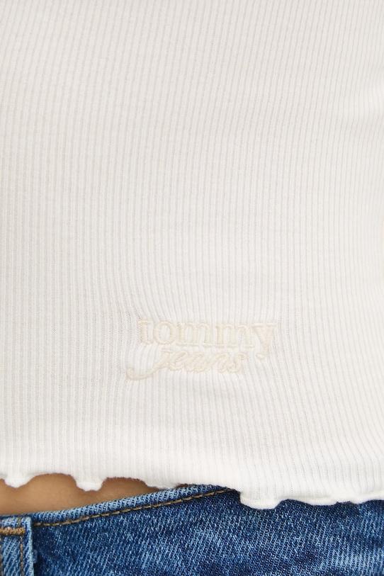 Эта футболка из коллекции Tommy Jeans выполнена из тонкой, эластичной ткани с высоким содержанием хлопка. - Эта модель содержит регенерированные хлопковые волокна. Новые волокна и пряжа производятся из старых текстильных отходов и используются для производства новой одежды. - Приталенный крой, подчеркивающий силуэт. - Классический круглый вырез. - Короткий рукав. - Модель отделана декоративной окантовкой. - Модель выполнена из трикотажного полотна в рубчик, которое отличается особой эластичностью и мягкостью, благодаря чему хорошо облегает тело и обеспечивает комфорт при носке. - Длина: 48 см. - Ширина под мышками: 30 см. - Размеры указаны для размера: S.