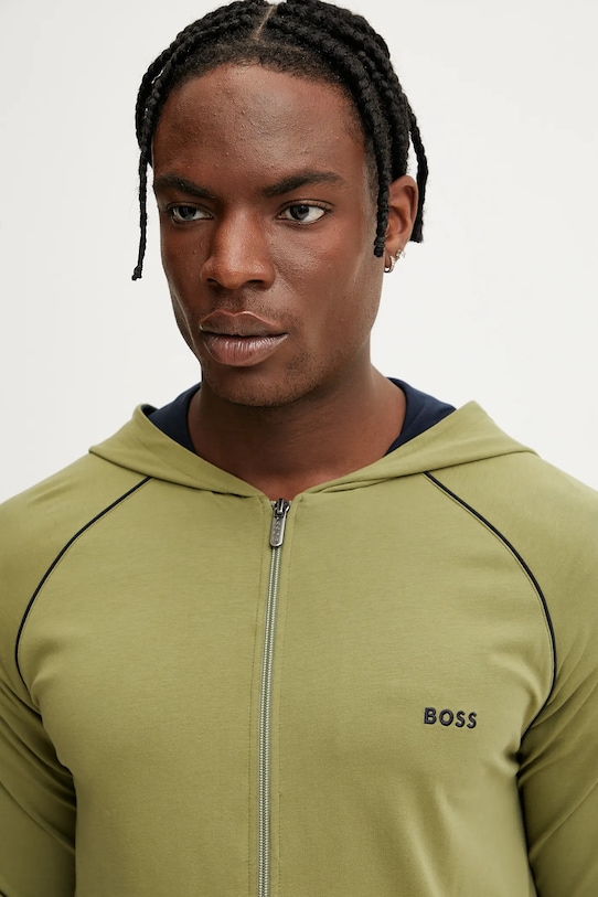 Эта толстовка с капюшоном из коллекции BOSS выполнена из тонкого, высокоэластичного трикотажа. Модель выполнена из исключительно комфортного материала с высоким содержанием хлопка. - Изделия линейки BETTER BOSS не менее чем на 60% изготовлены из материалов, полученных более экологичным способом. - Простой дизайн, не стесняющий движений. - Рукава реглан благодаря своей конструкции обеспечивают большую свободу движений. - Застежка-молния. - Рукава и нижний край отделаны удобными эластичными манжетами. - Два боковых накладных кармана. - Длина рукава (от капюшона): 77 см. - Длина: 67 см. - Ширина под мышками: 54 см. - Размеры указаны для размера: M.