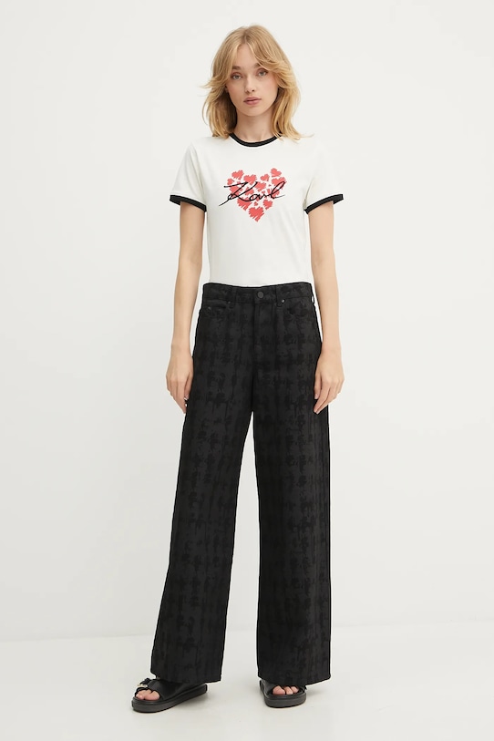 Джинсы свободного кроя из коллекции Karl Lagerfeld с высокой талией. Изготовлены из неэластичного денима. - Застежка на пуговицы и молнию. - Три накладных кармана спереди. - Два накладных кармана на ягодицах. - Ширина талии: 35 см. - Ширина бедер: 50 см. - Высота талии: 28 см. - Ширина штанины внизу: 32 см. - Ширина штанины: 31 см. - Длина по внутреннему шву: 79 см. - Размеры указаны для размера: 27.