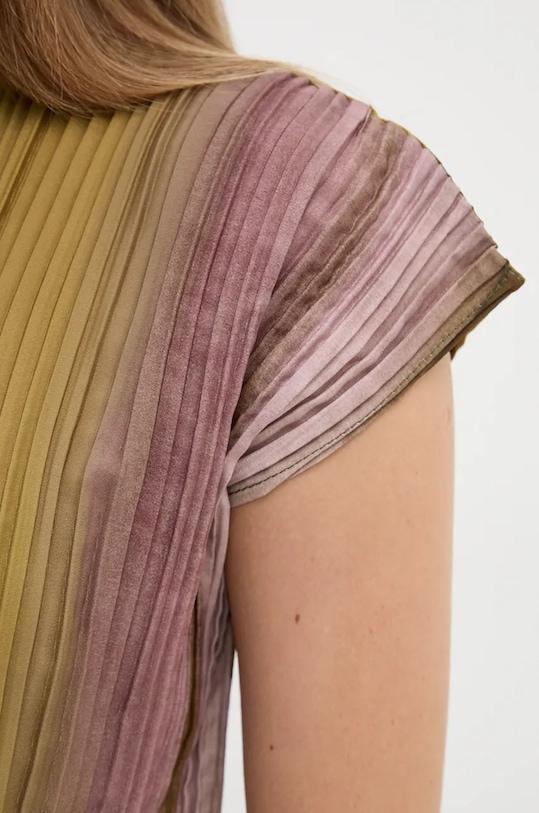 Эта блузка из коллекции Sandro Ferrone выполнена из плиссированной ткани. Полиэстер обеспечивает высокую устойчивость к сминанию. - Свободный крой, обеспечивающий полную свободу движений. - Классический круглый вырез. - Крой рукава со спущенной линией плеча не стесняет движений. - Тонкая, неэластичная ткань. - Узорчатый материал. - Длина: 56 см. - Ширина под мышками: 48 см. - Размеры указаны для размера: S.