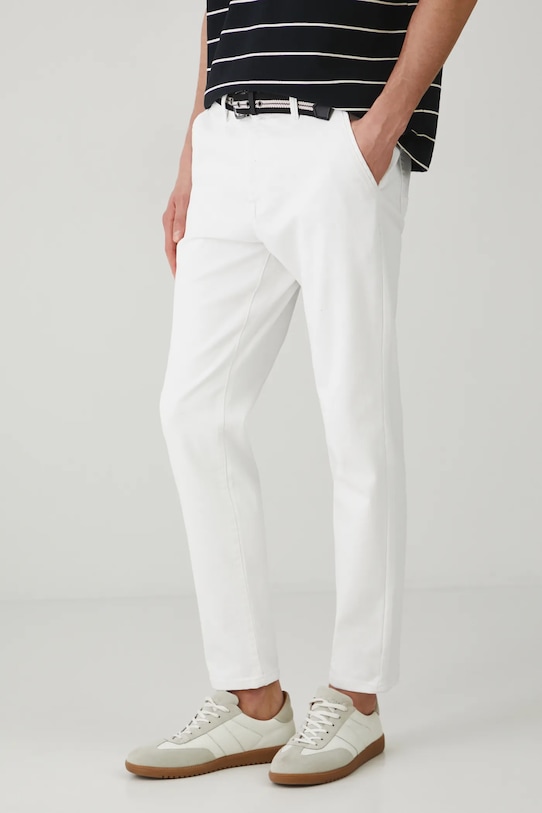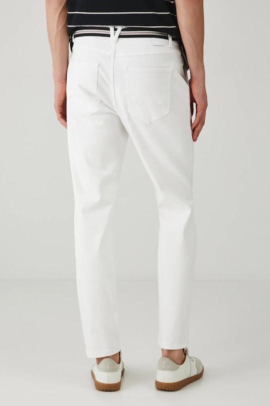 Эти зауженные джинсы из коллекции Medicine имеют стандартную талию и выполнены из гладкого денима. - Зауженный крой – джинсы, расширенные в талии и бедрах, с зауженными брючинами. Заниженная шаговая линия обеспечивает комфорт и подходит практически для любой мужской фигуры. Зауженный крой визуально удлиняет фигуру, не создавая ощущения облегания. - Модель со стандартной талией, застежкой на пуговицы и молнию. - Накладные карманы. - Ремешок в комплекте. - Гладкий материал. - Ширина талии: 42,3 см. - Ширина бедер: 53 см. - Высота талии: 28,7 см. - Ширина штанины внизу: 16,3 см. - Длина по внутреннему шву: 74 см. - Размеры указаны для размера: 31.