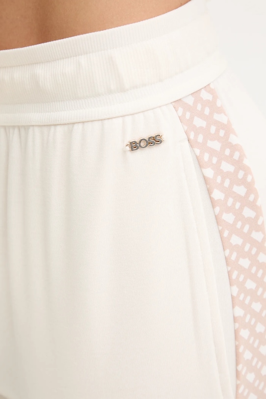 Брюки для дома из коллекции BOSS, выполненные из трикотажного полотна. Модель выполнена из мягкого и приятного на ощупь материала. - Брюки облегают бедра и ягодицы. - Крой с зауженными брючинами, не стесняющими движений. - Эластичный пояс и дополнительная регулировка ширины с помощью шнурков для предотвращения сползания во время движения. - Два боковых накладных кармана. - Ножки отделаны удобными эластичными манжетами. - Тонкий, эластичный трикотаж. - Ширина талии: 35,5 см. - Ширина бедер: 52 см. - Высота талии: 31 см. - Ширина штанины внизу: 14 см. - Ширина штанины: 28 см. - Длина внешнего шва: 100 см. - Размеры указаны для размера: S.