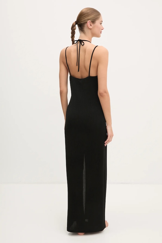 Пляжное платье из коллекции Карла Лагерфельда. Эластичный материал с узором выгодно подчеркивает фигуру. - Приталенный крой, подчеркивающий силуэт. - Декоративный, заостренный вырез. - Нерегулируемые, несъемные лямки. - Модель с регулируемой шнуровкой. - У него есть щель. - Тонкий, эластичный трикотаж. - Длина: 152 см. - Ширина под мышками: 40 см. - Ширина бедер: 48 см. - Размеры указаны для размера: S.