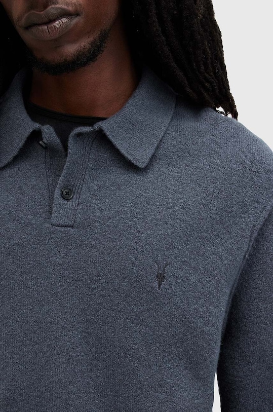 Этот свитер из коллекции AllSaints с воротником связан из шерстяной пряжи средней плотности, эластичной.