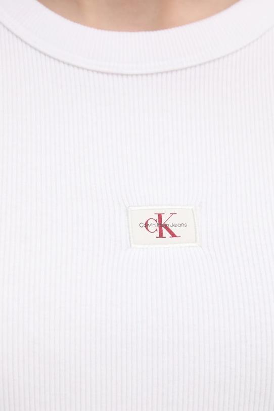 Эта футболка из коллекции Calvin Klein Jeans выполнена из тонкой, эластичной ткани. Модель выполнена из исключительно комфортного материала с высоким содержанием хлопка. - Эта модель содержит регенерированные хлопковые волокна. Новые волокна и пряжа производятся из старых текстильных отходов и используются для производства новой одежды. - Приталенный крой, не стесняющий движений. - Классический круглый вырез. - Модель выполнена из трикотажного полотна в рубчик, которое отличается особой эластичностью и мягкостью, благодаря чему хорошо облегает тело и обеспечивает комфорт при носке. - Длина: 56 см. - Ширина под мышками: 38 см. - Размеры указаны для размера: S.