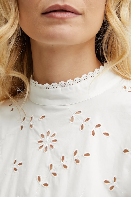 Эта блузка из коллекции Weekend Max Mara выполнена из комбинации двух разных материалов. Модель выполнена из исключительно комфортного хлопка. - Простой дизайн, не стесняющий движений. - Модель с воротником-стойкой. - Застегивается на пуговицы сзади. - Длинный рукав. - Рукава отделаны резинкой. - Модель с декоративной вышивкой. - Длина: 62 см. - Ширина под мышками: 51 см. - Размеры указаны для размера: S.