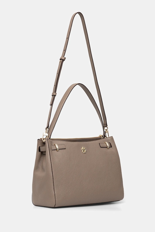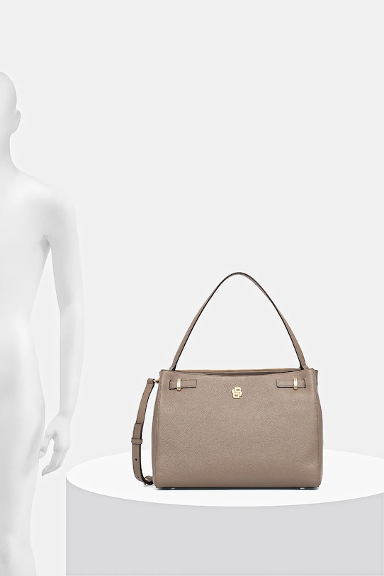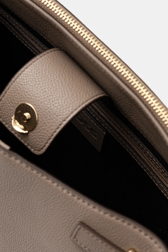 Большая сумка из коллекции BOSS. Модель на молнии, выполнена из натуральной кожи. - Имеет два отделения: одно на молнии, другое на магнитной застежке. - Регулировка глубины с помощью защелок. - Имеет два внутренних кармана: один прорезной, другой на молнии. - Модель на подкладке. - Вмещает формат А4. - Модель оснащена металлическими ножками, защищающими дно сумки. - Имеет ручку и съемный регулируемый ремень. - Входящий в комплект тканевый чехол защищает изделие от пыли. - Глубина: 15 см. - Высота: 25,5 см. - Ширина у основания: 35 см. - Длина ручки: 58 см. - Минимальная длина ремешка: 99 см. - Максимальная длина ремня: 119 см.