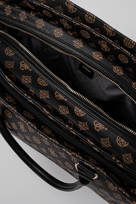 Большая сумка из коллекции Guess. Модель на молнии, выполнена из экокожи. - Он состоит из трех камер. - Застежка-молния. - Модель на подкладке. - Имеет отдельное отделение на липучке для ноутбука или планшета. - Имеет карабин, к которому можно прикрепить ключи. - Имеет два внутренних кармана: один прорезной, другой на молнии. - Карман на молнии на задней стороне позволяет безопасно хранить телефон или другие мелкие предметы. - Ремешок на задней панели позволяет прикрепить к ручке чемодана. - Сумка для ношения в руке или на плече. - Ручки застегиваются на защелку. - Глубина: 18,5 см. - Высота: 33 см. - Ширина у основания: 45,5 см.
