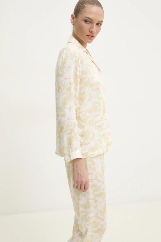 Пижама из коллекции Answear.LAB. Изготовлена из ткани с рисунком. Изготовлена из дышащего вискозного материала. - Пижама состоит из рубашки и брюк. - Свободный крой, обеспечивающий полную свободу движений. - Модель с воротником. - Длинный рукав. - Крой рукава со спущенной линией плеча не ограничивает подвижность. - Удобная застежка на кнопки позволяет легко надевать и снимать. - Брюки свободные в области бедер и ягодиц. - Высокая талия обеспечивает комфорт во время занятий спортом и позволяет визуально стройнить фигуру. - Эластичный пояс предотвращает скольжение во время движения. - Прямая нога полной длины. - Тонкая, неэластичная ткань.