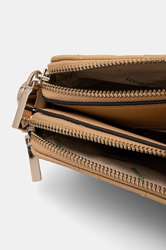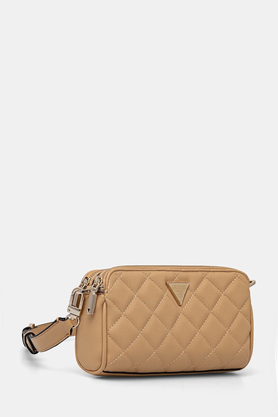 Небольшая сумочка из коллекции Guess. Модель на молнии, выполнена из экокожи. – Изделие с наполнителем из современных экологичных волокон, имитирующих натуральный пух. Этот утеплитель сохраняет тепло даже во влажном состоянии и быстро высыхает. Весь наполнитель изготовлен из переработанного пластика или другого альтернативного сырья, что снижает воздействие на окружающую среду. - Застежка-молния и магнитная застежка. - Внутренний накладной карман. - Съемный регулируемый ремешок. - Не подходит для формата А4. - Минимальная длина ремешка: 99 см. - Максимальная длина ремня: 127 см. - Глубина: 4 см. - Высота: 12 см. - Ширина у основания: 21 см.