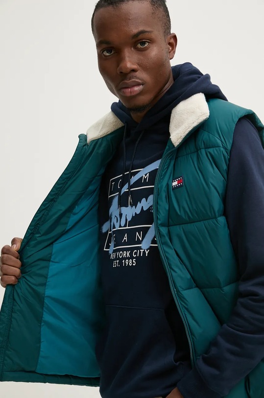 Этот жилет из коллекции Tommy Jeans выполнен из гладкой ткани с утеплителем. Стеганая конструкция дополнена синтетическим утеплителем для дополнительного комфорта в прохладную погоду. - Изделие содержит переработанные волокнистые материалы. - Обычная посадка. - Застежка-молния. - Два прорезных боковых кармана на молнии. - Поднятый воротник и несъемный капюшон обеспечивают дополнительную защиту от холода. - Нижний край отделан кулиской со стопорами, которая благодаря возможности регулирования обхвата низа повышает изоляцию от холода. - Утепленная модель с подкладкой. - Длина: 68 см. - Ширина под мышками: 59 см. - Размеры указаны для размера: L.