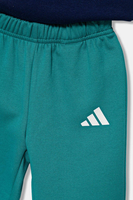 Этот детский спортивный костюм из коллекции adidas выполнен из тонкой, эластичной ткани. - Простой дизайн, не стесняющий движений. - Классический круглый вырез. - Рукава и низ изделия отделаны удобными эластичными манжетами. - Крой с зауженными брючинами, не стесняющими движений. - Ножки отделаны манжетами. - Мягкая внутренняя отделка повышает комфорт использования. - Длина рукава: 36 см. - Длина: 43 см. - Ширина под мышками: 30 см. - Ширина талии: 23 см. - Ширина бедер: 30 см. - Высота талии: 20 см. - Ширина штанины внизу: 10 см. - Ширина штанины: 18 см. - Длина штанины: 58 см. - Размеры указаны для высоты: 104 см.