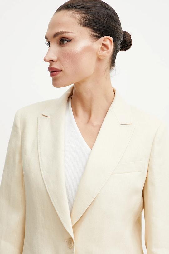 Этот блейзер из коллекции Weekend от Max Mara выполнен из тонкой, неэластичной ткани. Модель выполнена из дышащего льняного материала. - Простой дизайн, не стесняющий движений. - Застежка на пуговицы. - Модель без подкладки. - В плечах вшиты подкладки. - Модель с карманами, декорированными клапанами. - Длина рукава: 60 см. - Длина: 67 см. - Ширина под мышками: 45 см. - Размеры указаны для размера: 36.