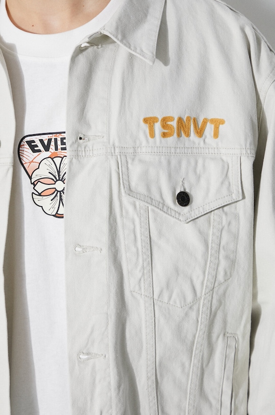 Куртка из коллекции thisisneverthat. Эта модель без подкладки выполнена из денима. Джинсовая ткань жёсткая, хорошо держит форму. - Свободный крой, обеспечивающий полную свободу движений. - Удобная застежка на кнопки позволяет легко надевать и снимать. - Крой рукава со спущенной линией плеча не ограничивает подвижность. - Модель с воротником. - Два прорезных боковых кармана и два нагрудных кармана на пуговицах. - Рукава с манжетами на пуговицах. - Модель с декоративной вышивкой. - Неутепленная модель без подкладки. - Длина рукава (от воротника): 79,5 см. - Длина: 66 см. - Ширина под мышками: 60 см. - Размеры указаны для размера: M.