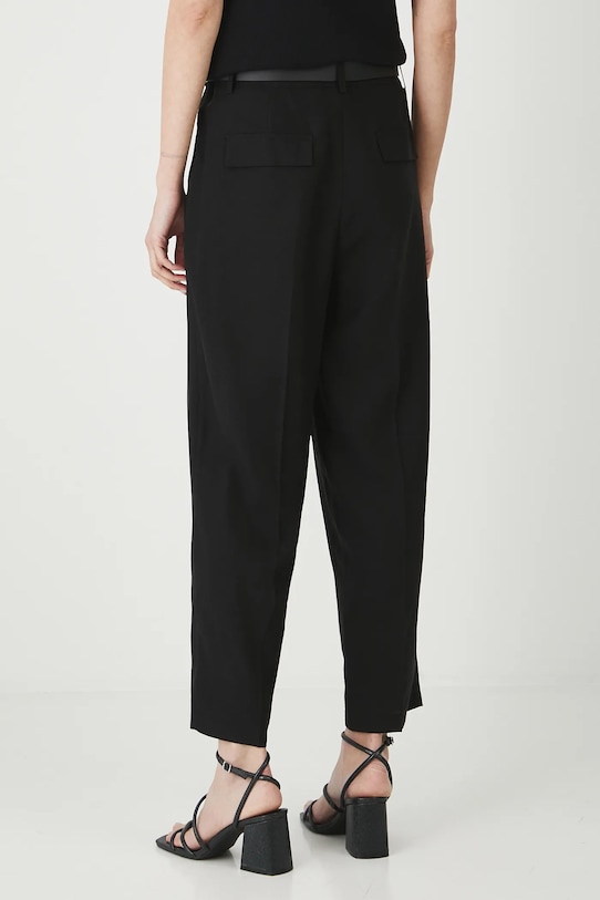 Брюки из коллекции «Медицина». Изготовлены из гладкой ткани. - Материал с добавлением льна обеспечивает комфорт и воздухопроницаемость. - Стиль «Чино». - Обхват талии обычный. - Застежка на молнию и крючок. - Накладные карманы. - Декоративные закладки. - Модель с декоративными клапанами. - Штанина отутюживается в складку. - Укороченная нога. - Ремешок из эко-кожи в комплекте. - Гладкая ткань. - Модель выполнена из комбинации лиоцелла и льна. - Ширина талии: 37,5 см. - Ширина бедер: 53 см. - Высота талии: 31,5 см. - Ширина штанины внизу: 19 см. - Длина по внутреннему шву: 67 см. - Размеры указаны для размера: S.
