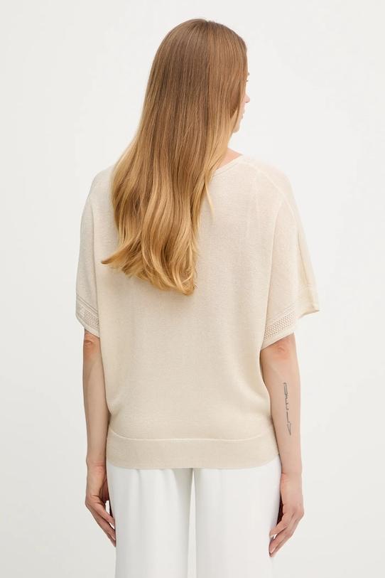 Этот свитер из коллекции Morgan выполнен из тонкого трикотажа. Он изготовлен из исключительно комфортного материала с высоким содержанием вискозы. - Изготовлено из экологически чистого материала LENZING ECOVERO. LENZING ECOVERO производится из органической целлюлозы и древесной массы, используя на 50% меньше воды, чем популярная вискоза. - Свободный крой, обеспечивающий полную свободу движений. - Декоративный, заостренный вырез. - Короткий рукав. - Плетение с декоративной металлической нитью. - Нижний край отделан удобной эластичной манжетой. - Эластичный трикотаж. - Длина: 64 см. - Ширина под мышками: 62 см. - Размеры указаны для размера: S.