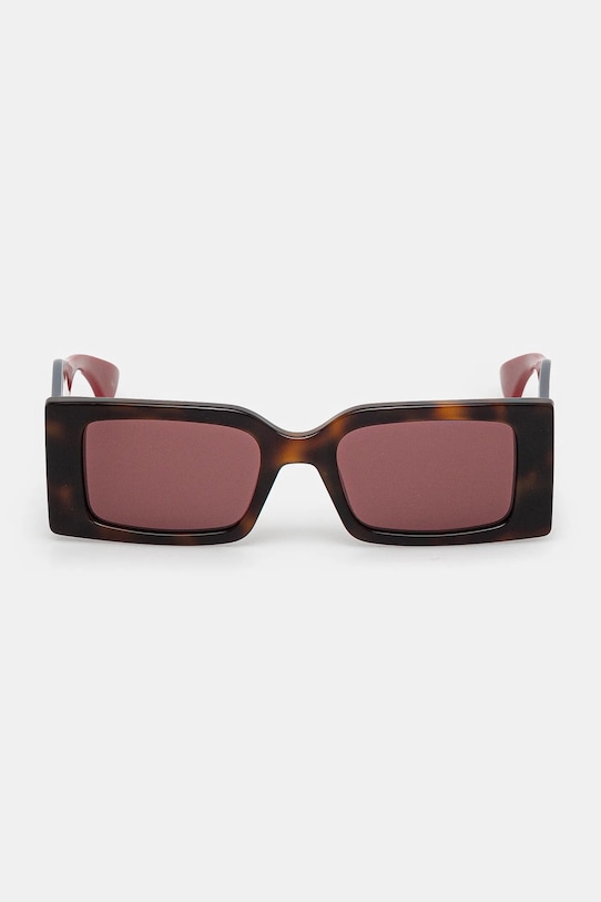 Солнцезащитные очки из коллекции Gucci. Эта модель с гладкими линзами и пластиковой оправой имеет защиту UV 400. Полученный вами футляр может отличаться от изображенного на фотографии. Производитель отправляет футляры случайным образом, поэтому выбрать футляр невозможно. - Форма оправы: прямоугольная. - Защита от ультрафиолета. - В комплект модели входят чехол и салфетка для протирки очков. - Категория 3 (пропускает 8–18% света) — самая распространённая и универсальная категория затемняющих фильтров. Очки категории 3 идеально подходят для повседневного использования в солнечные дни и для отдыха в жарких странах. - Ширина рамы: 144 мм. - Ширина линзы: 51 мм.