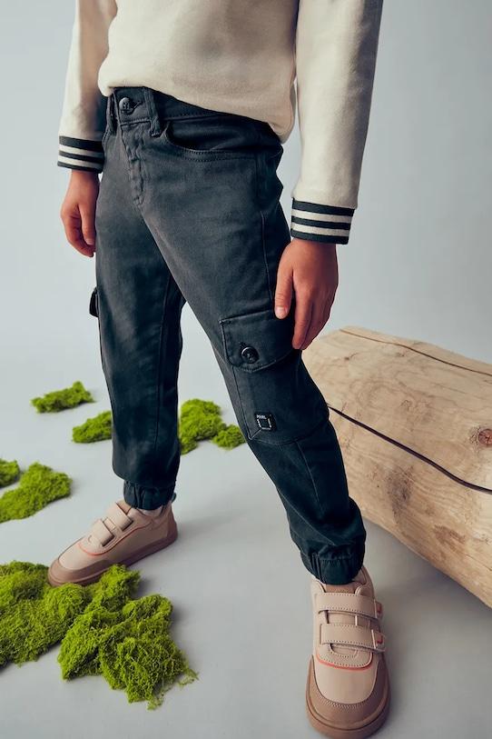 Детские брюки из коллекции Mayoral из тонкой, слегка эластичной ткани. Модель выполнена из исключительно комфортного материала с высоким содержанием хлопка. - Для производства использовался хлопок, полученный в результате экологически устойчивого производства, что обеспечивает минимально возможное потребление воды и экологически безопасное окрашивание. - Брюки слегка приталенные на бедрах. - Крой с зауженными брючинами, не стесняющими движений. - Ножки отделаны удобными эластичными манжетами. - Два накладных кармана спереди. - Карманы для груза обеспечивают дополнительное место для хранения мелких предметов. - Врезной, отстегивающийся карман сзади.