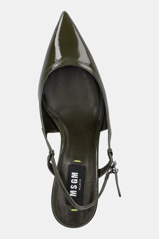 Эти туфли на шпильке из коллекции MSGM изготовлены из лакированной кожи. Верх из непористой ткани легко чистится влажной тканью. - Заостренный, жесткий нос. - Модель с открытой пяткой. - Застежка-пряжка со штифтом для индивидуальной подгонки. - Кожаная подошва. - Модель на шпильке. - Контурная стелька поддерживает свод стопы и обеспечивает длительный комфорт. - Модель с кожаной внутренней частью, комфортной для стопы, предотвращающей натирание, потертости и появление неприятного запаха. - Входящий в комплект тканевый чехол защищает изделие от пыли. - Высота каблука: 9,5 см. - Длина вставки: 25 см. - Размеры указаны для размера: 39.
